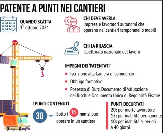 Dal 1° ottobre è entrato in vigore la patente a crediti per imprese e lavoratori che lavorano nei cantieri. Si parte con 30 crediti che possono arrivare fino a 100 in caso di comportamenti virtuosi, mentre se si violano norme di sicurezza si perderanno punti: sotto i 15 il cantiere non potrà essere operativo. Ecco come mettersi in regola.